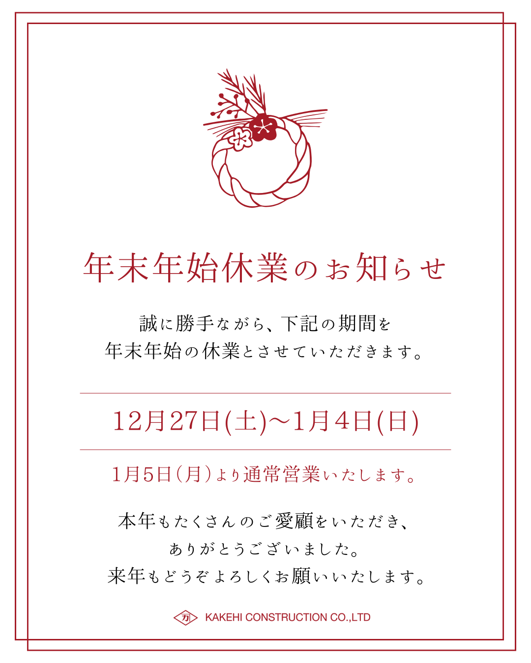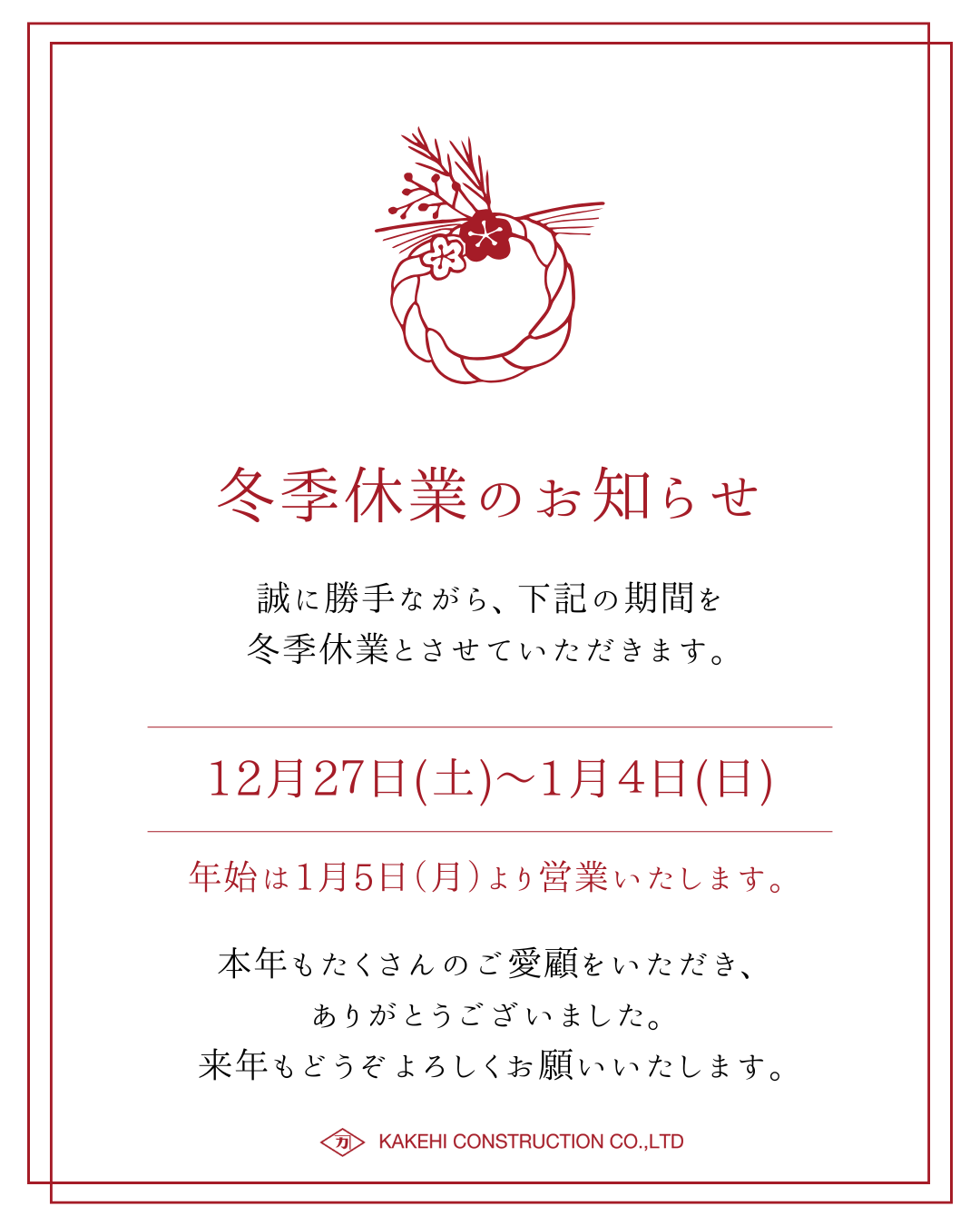 誠に勝手ながら、下記を年末年始の休業期間とさせていただきます。